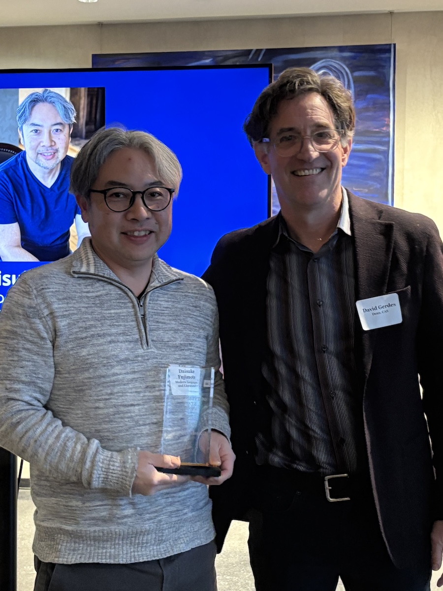 Daisuke Fujimoto was one of four recipients of the 2025 CAS Outstanding Staff Awards. Daisuke was nominated for his outstanding contribution to the Department of Modern Languages and Literatures. Nominator Dr. Damaris Puñales–AlpÃzar wrote “Daisuke is a model of excellence and integrity, and his contributions have had a profound and lasting impact on all of us.” Daisuke was honored at the CAS end-of-year party on December 9, 2025. Congratulations Daisuke!